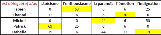 Lors de cette soirée, nous avons fait circuler un petit questionnaire afin de voir si les gens présents avaient la même perception de l’exécutif syndical que l’exécutif lui-même. Voici les résultats en pourcentage (la bonne réponse apparaît en jaune) :