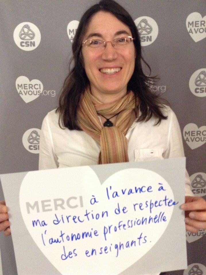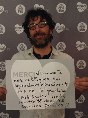Des nouvelles du Front commun : Bien sûr, travailler en front commun comprend l’énorme avantage du poids du nombre. Toutefois, il faut être capable de compromis. Nos propositions d’amendements ne seront donc pas toujours retenues (pour une idée de notre poids en termes de nombre, vous pouvez consulter le document «Mobilisation FNEEQ 2015» de Pierre Mercure, président du syndicat des profs du Cégep Garneau). Dans le cadre de la première phase d’harmonisation des demandes, l’une d’entre elles a par contre déjà été retenue! Bonne nouvelle, donc, du côté de la défense de notre autonomie professionnelle (plus de détails à l’assemblée générale de demain). Côté demandes salariales, la consultation portera sur un modèle qui tiendra compte à la fois d’un rattrapage salarial, d’une protection contre la hausse du coût de la vie, de mesures pour lutter contre la précarisation (plus de détails à l’assemblée générale de demain). C’est important de vous faire entendre à chaque étape de la négo!