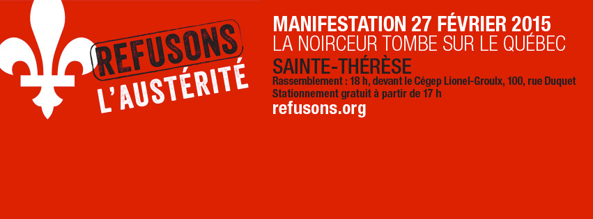 - 12 février : Grand rassemblement du Collectif « Refusons l’austérité » (Québec).