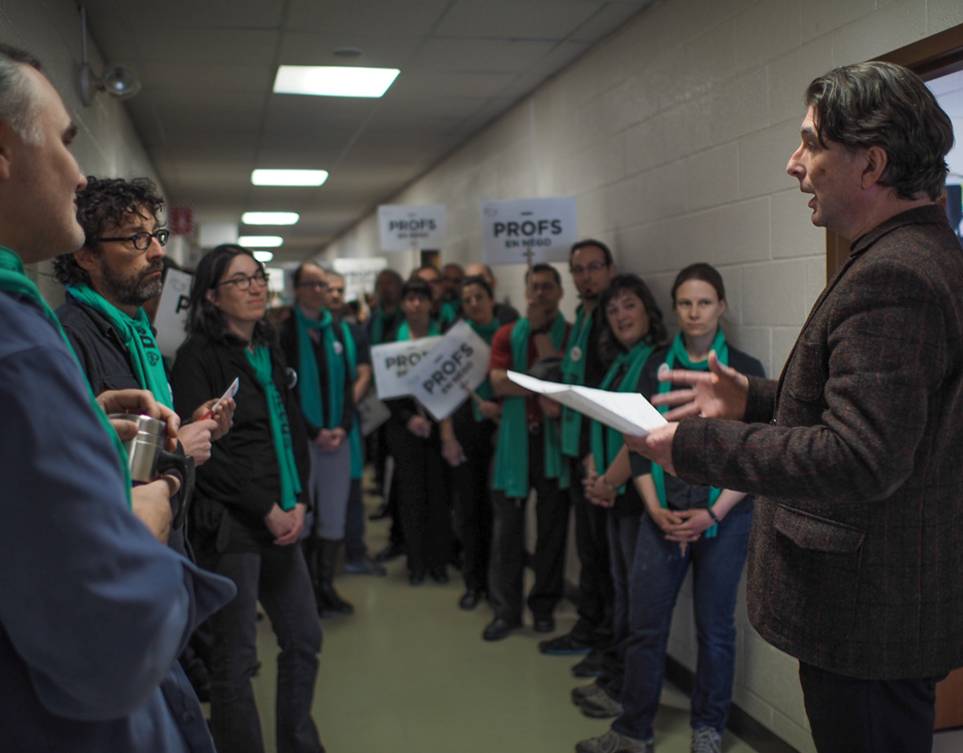ACTION «AVEC NOUS LE 25 MARS!» (action nationale) : Nous étions près de 80 profs à aller exiger une négociation de bonne foi par la remise d’une lettre à notre directeur général. Merci à tous pour cette action plus que réussie!!! (Pour voir toutes les photos, cliquez ici. Merci à Pierre Robert!) Cette action nationale a porté ses fruits (la route sera longue, mais un gain de temps en temps, ça fouette les troupes!) : la partie patronale a accepté de dévoiler les solutions qu’elle préconise (pour plus de détails, consultez le Rapport de table no.4).