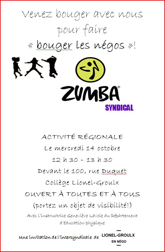 Action «ZUMBA – Faisons bouger les négos!» le mercredi 14 octobre