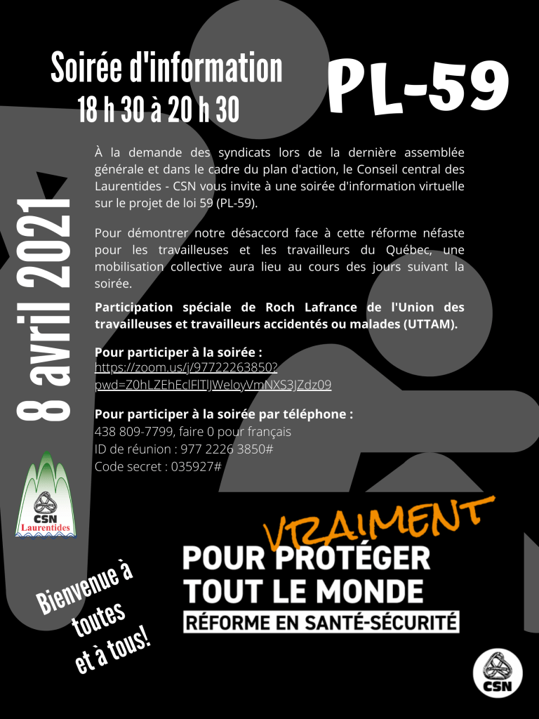 L’heure est au renouveau, au brassage et aux nouvelles solidarités. Le travail syndical en est un d’écoute, de recherche de solutions, de justesse des échanges avec les membres de la communauté, d’exigences à l’écrit, à l’oral, de la compréhension de la tâche, de rigueur et d’intégrité, de défense de notre profession, de défense de nos droits et de notre contrat de travail. Il est l’occasion de rencontrer des camarades lors des regroupements cégeps et de comprendre les réalités laurentiennes au conseil central et plus largement des rouages de la CSN.