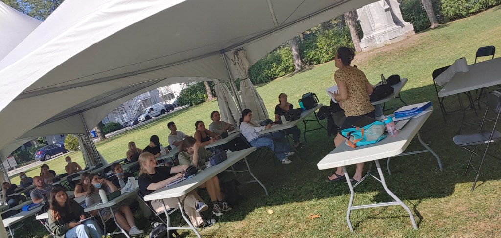 31 août 2021, nous avions rendez-vous toutes les deux pour réfléchir à un projet commun pour le De vive voix. Plusieurs thèmes de travail ont fait surface. Comment être pédagogue pendant les négociations et entre les périodes de négociation? Les Unions qu’ossa donne? disait Yvon Deschamps. Puis nous avons revisité les étapes dans la carrière des professeur.es: les périodes de précarité, la conciliation travail/famille, l’obtention de la permanence, les conflits et les maladies, le défi de la mi-parcours ou la tentation d’autre chose, ceux et celles qui choisissent la profession de prof comme deuxième carrière, incluant les parcours migratoires, puis l’expérience de la préparation à la retraite.
