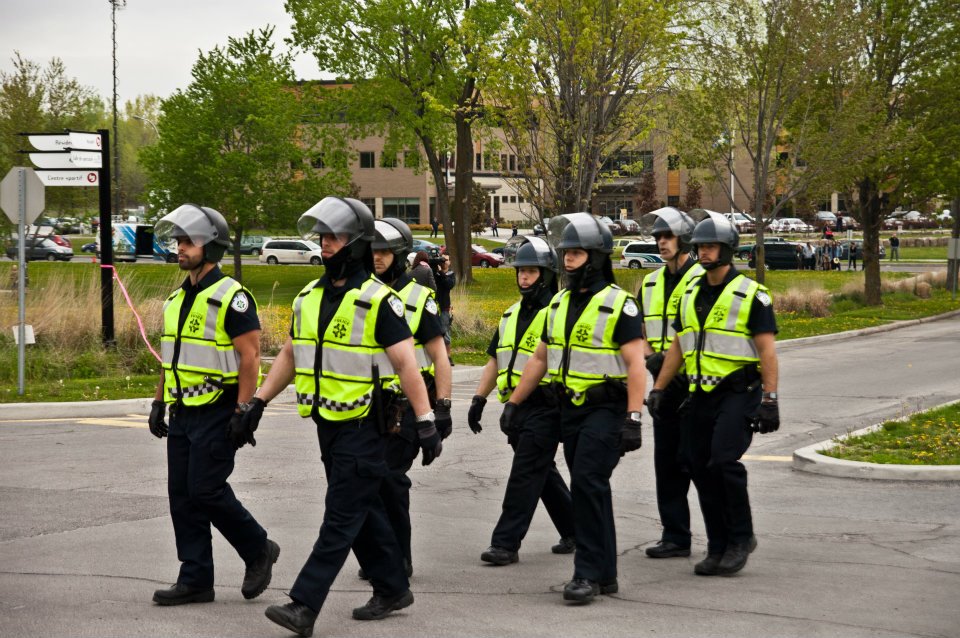 La direction du collège Lionel-Groulx a aussi respecté au-delà de la lettre l’ordonnance de l’injonction qui lui demandait de « prendre tous les moyens appropriés, nécessaires et raisonnables y compris le recours aux forces policières » pour assurer la reprise des cours. Elle a notamment embauché, à partir du 11 mai, la section B.E.S.T de la compagnie de sécurité Garda, section qui avait déjà fait les manchettes pour l’intimidation physique et verbale dont elle avait fait preuve à l’Université de Montréal en avril dernier. Les employés de B.E.S.T. sont habilités entre autres à porter des matraques et à s’en servir : leur seule présence mettait le collège en état de siège réel.