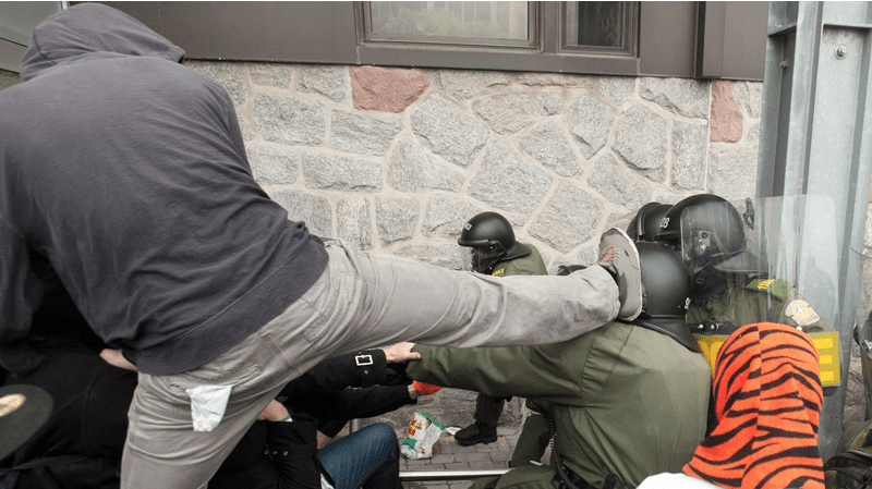 Nous ne sommes pas des soldats, gaz lacrymogènes inutiles qui flottent dans l’air, Niagara insensé.