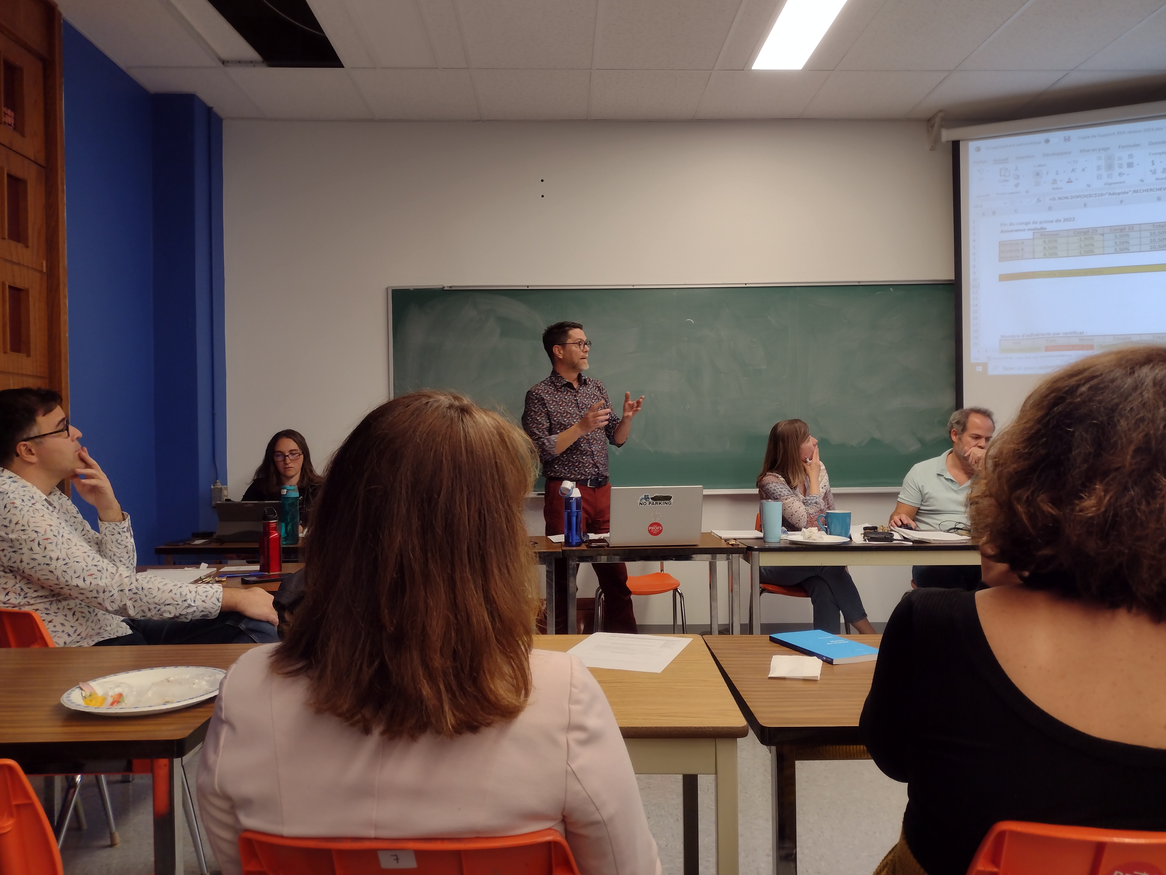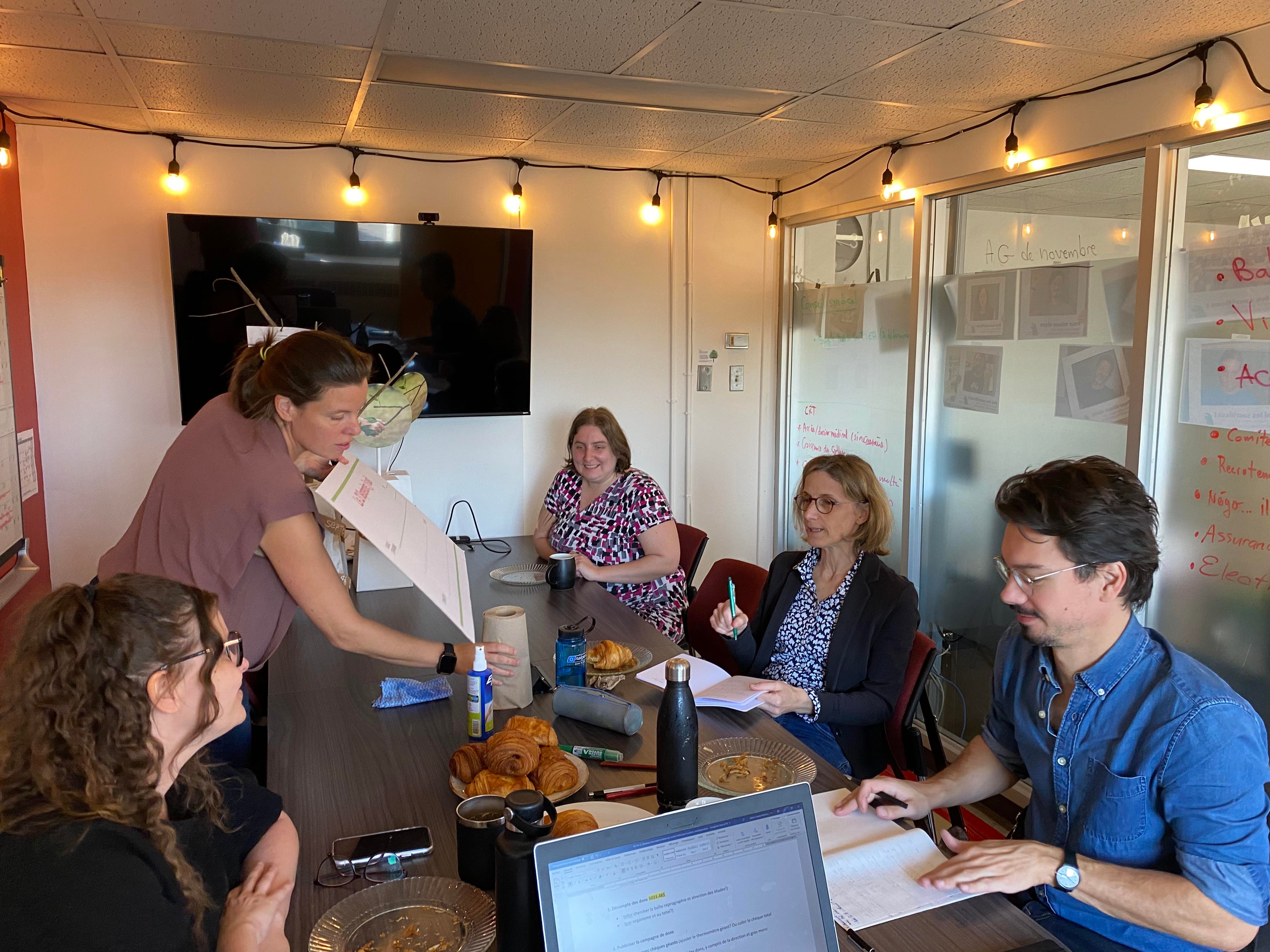 Pendant la discussion autour de l’évaluation des postes, la partie patronale a demandé un caucus pour analyser notre demande d’ajouter un poste en français. J’ai eu l’impression d’être dans l’émission « Dans l’œil du Dragon » 😊. À leur retour, l’ajout du poste fut accepté.