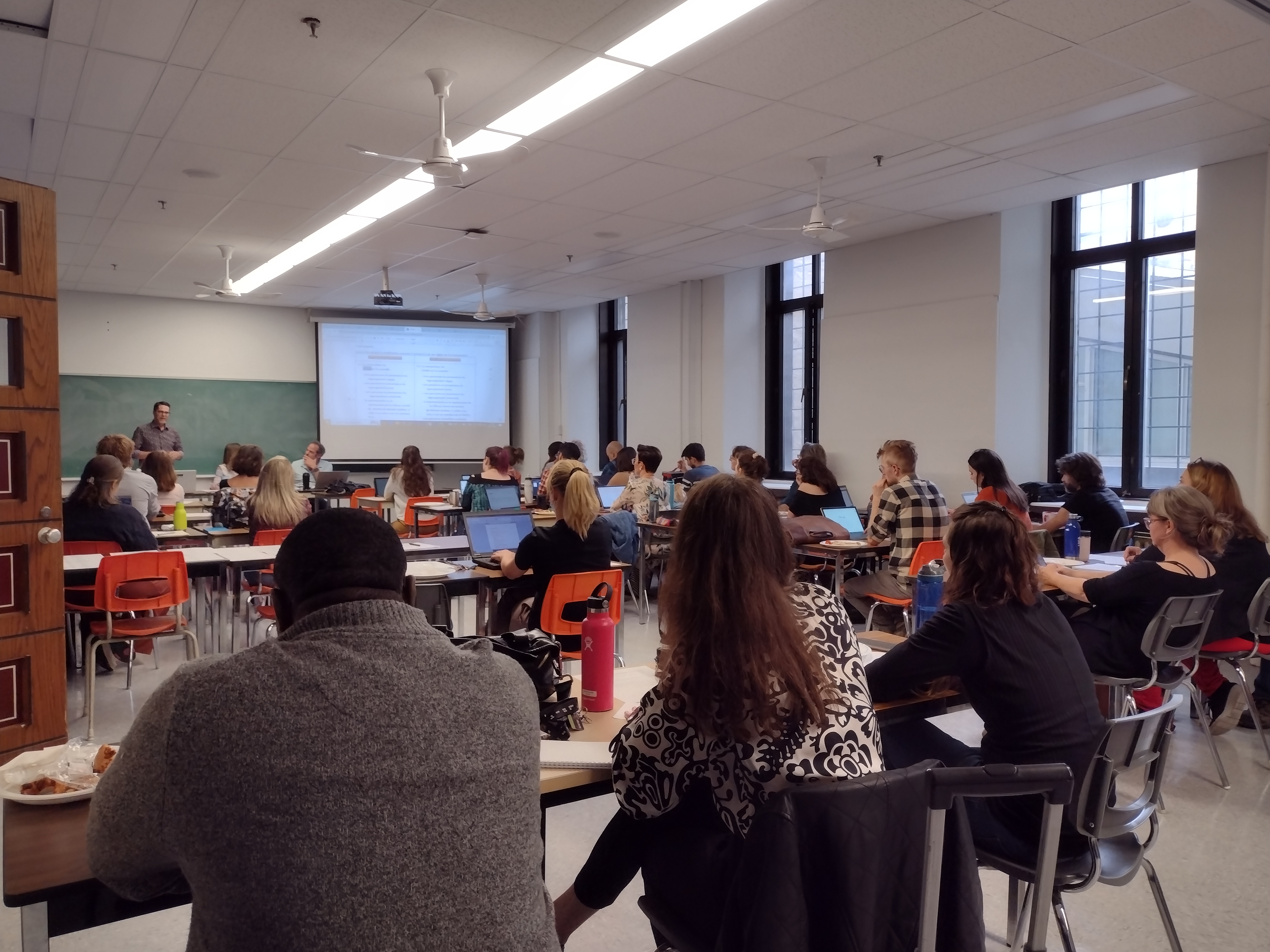 Dans la foulée de nos travaux, nous avons tenu une table ronde sur le sujet (le mercredi 19 octobre). Pour l’occasion, deux linguistes ont été invitées : Monique Cormier de l’UdM et Sophie Piron de l’UQAM. Cormier est une linguiste de renom au curriculum impressionnant; elle a notamment écrit un guide et développé une formation afin d’implanter l’écriture inclusive sous la forme de la rédaction épicène dans son institution. La Ville de Montréal et HEC ont acheté sa formation. À partir de son expérience, Cormier a pu nous témoigner de la difficulté d’implanter des changements linguistiques aussi profonds parmi de nombreux employés, allant des secrétaires aux administrateurs. Quant à Sophie Piron, une grammairienne et une historienne, elle nous a expliqué que les postulats sur lesquels repose l’écriture inclusive (par exemple : le français est machiste et a été masculinisé pour effacer intentionnellement la présence des femmes) sont de véritables impostures intellectuelles en regard de l’histoire de la langue et de sa grammaire. Plusieurs linguistes d’importance ont déjà fait cette démonstration, mais leurs travaux sont malheureusement peu connus ou diffusés au Québec.