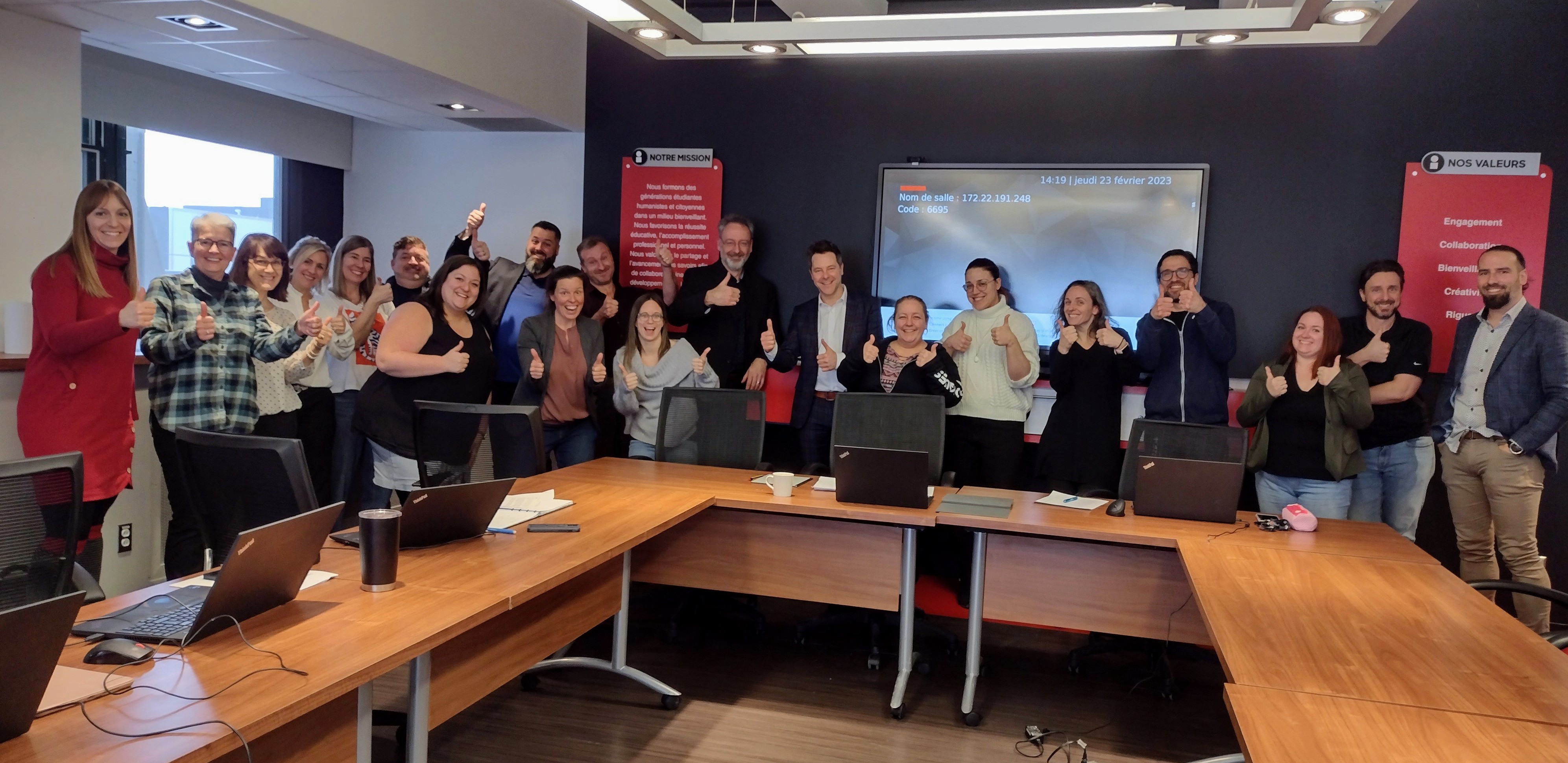 Jour 2, 14 mars, Marilyn Charbonneau: La deuxième journée de formation, lendemain de la journée nationale de la promotion de la santé mentale positive, adoptée en 2022, a été consacrée à l’implantation du réseau d’entraide. Cette journée porteuse d’espoir à l’implantation concrète du projet dans notre collège nous a plutôt laissés dans le questionnement, Marc et moi. Bien que chacun d’entre nous soit déjà entraidant, à sa façon, une certaine structure se doit d’être établie pour favoriser la pérennité du projet et soutenir au quotidien l’action « entraidante ». Cette structure, par le biais d’un comité officiel ou encore d’un simple réseau informel de communication, permettrait aux « entraidants » de se rassembler autour d’un projet commun, d’une vision commune du bien-être collectif. Cette structure permet d’assurer une formation adéquate à ses membres désireux d’en apprendre plus sur l’intervention entraidante, tout en se créant un réseau de soutien interne, parce que, oui, les entraidants ont aussi besoin de soutien.