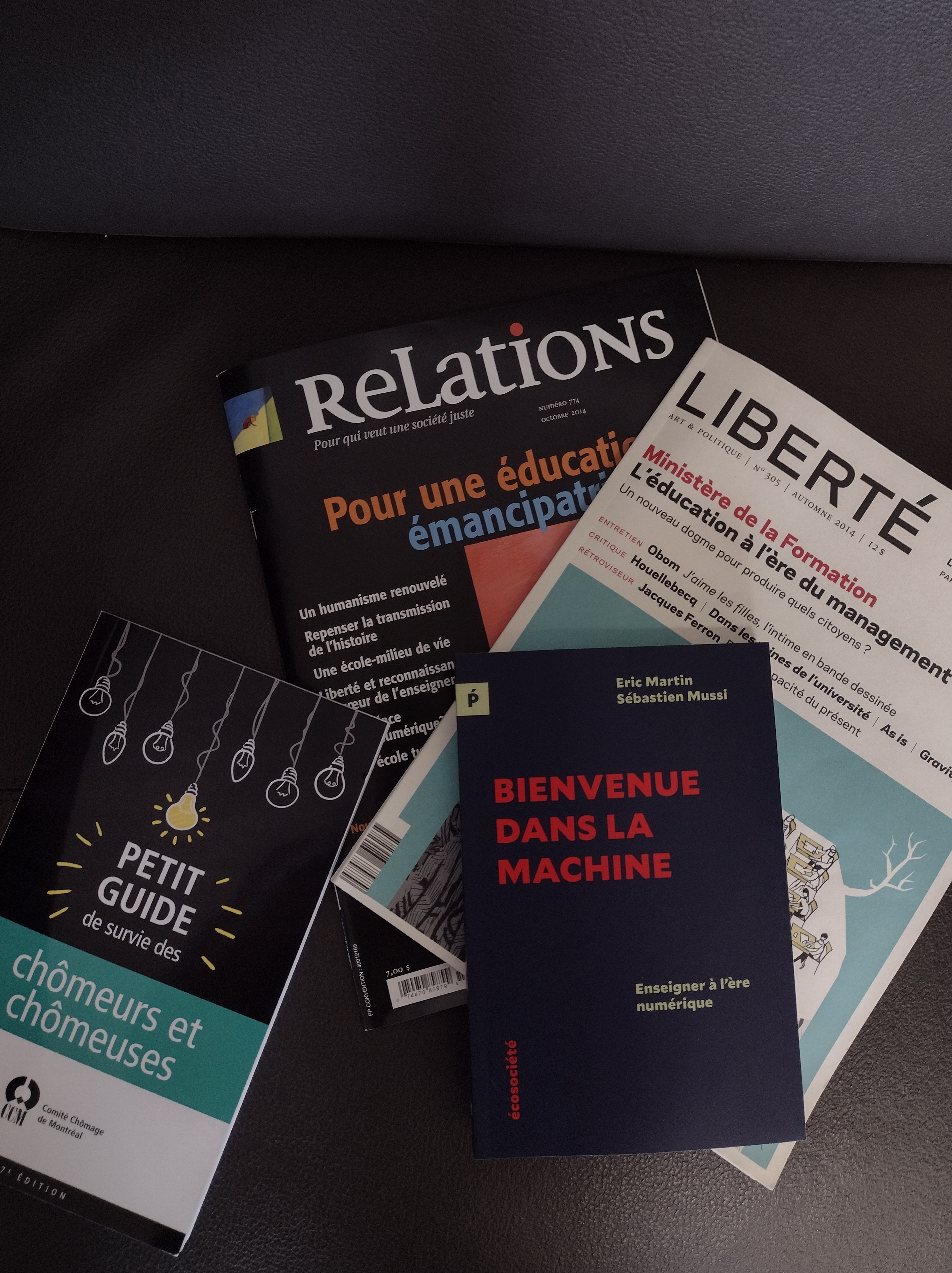 Me voici donc en formation avec quatre autres collègues syndiquées, dont notre collègue Marilyn Charbonneau de TÉE à Lionel-Groulx. La première journée a démontré la présence dans nos milieux de différents malaises (divorce, violence, pauvreté, épuisement, pensées suicidaires, alcoolisme, drogues, agressions, intimidations, etc.). Toutes ces situations vécues par nos collègues de travail peuvent mener à des problématiques diverses au travail (absentéisme, violence physique ou verbale, attitude rébarbative, conflits, vols, vandalisme, etc.).