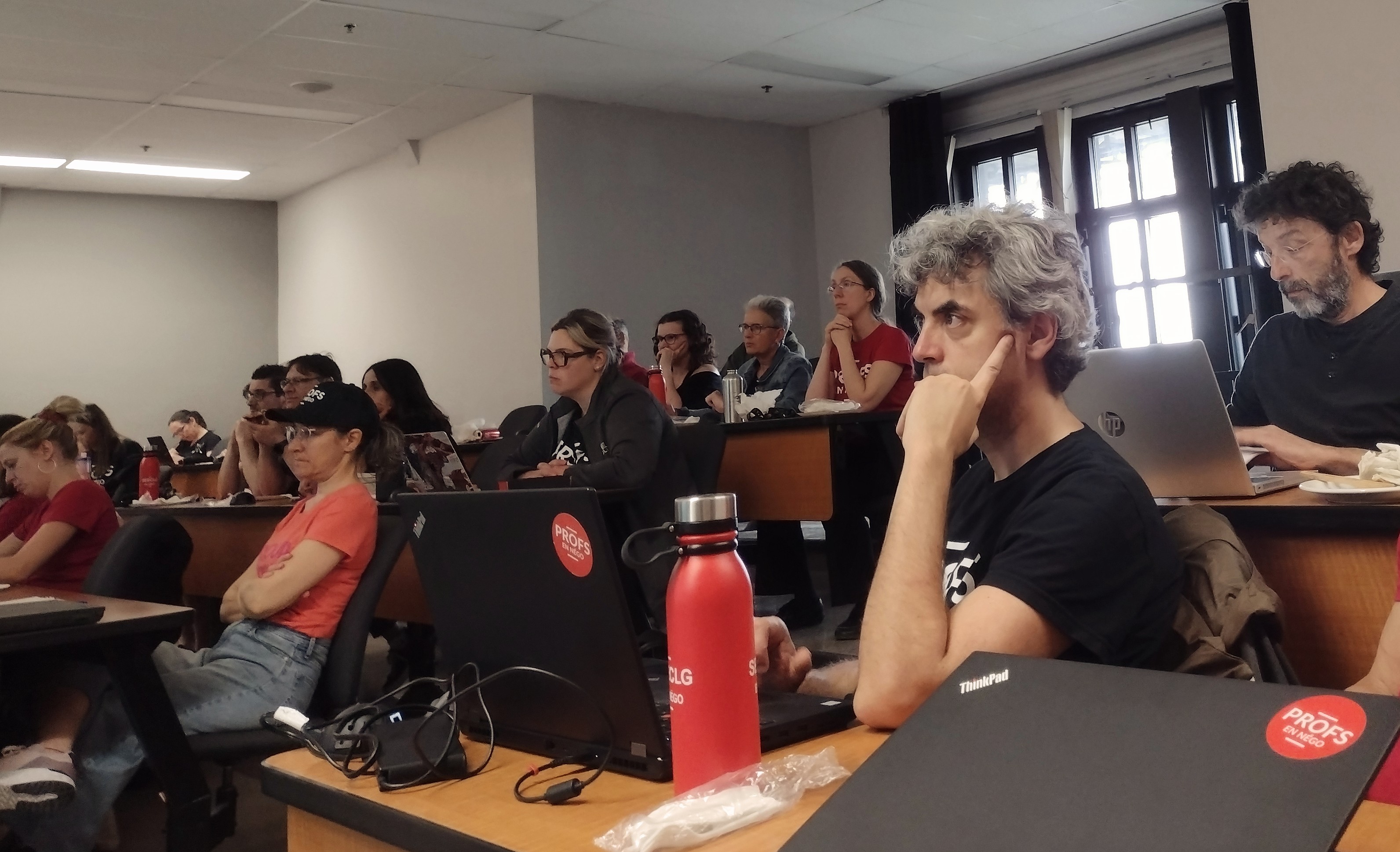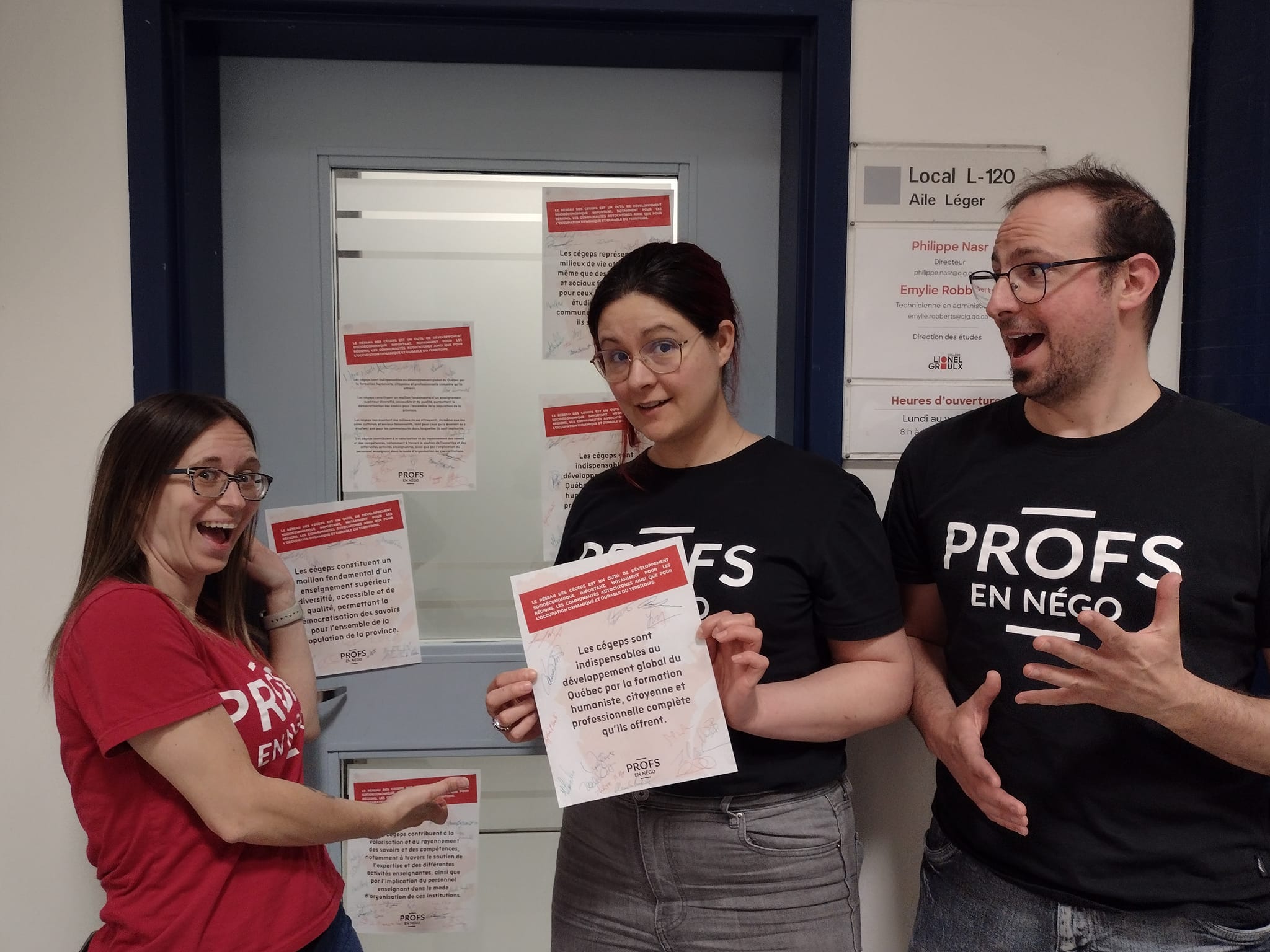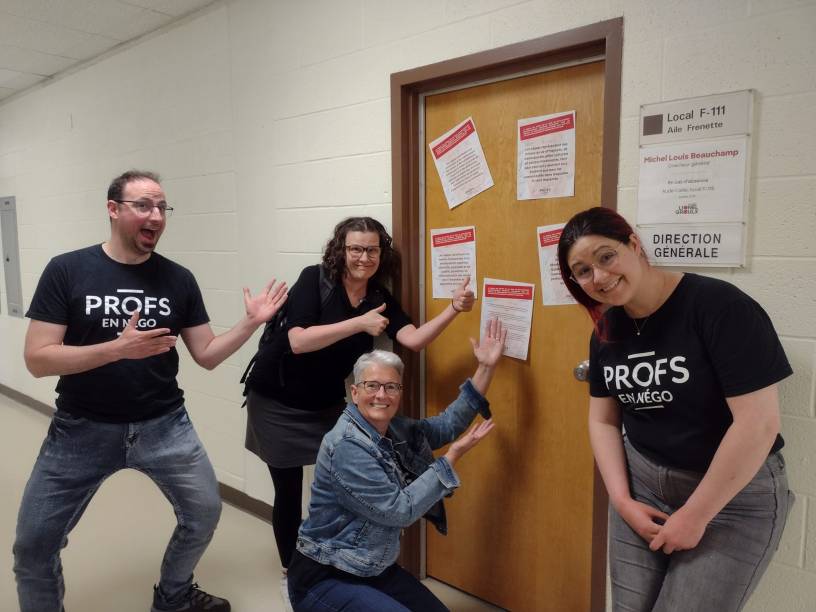 Votre exécutif a vécu 2022-2023 comme une année étrange. Déjà, dès l’automne, nous étions plongés dans une année de négociation de la convention collective, encore, cette fois-ci en Alliance des professeurs et des professeurs de cégep ainsi qu’en Front commun parmi les 420 000 travailleuses et travailleurs de la CSN, de la CSQ, de la FTQ et de l’APTS. Cette belle force unifiée portera certainement ses fruits au bout du processus, mais ça a multiplié à court terme les réunions des instances, remplissant le calendrier déjà bien dense de votre exécutif. Qui dit négos dit consultations et mobilisation, et à ces registres-là, le SEECLG a été parmi les plus actifs du réseau!