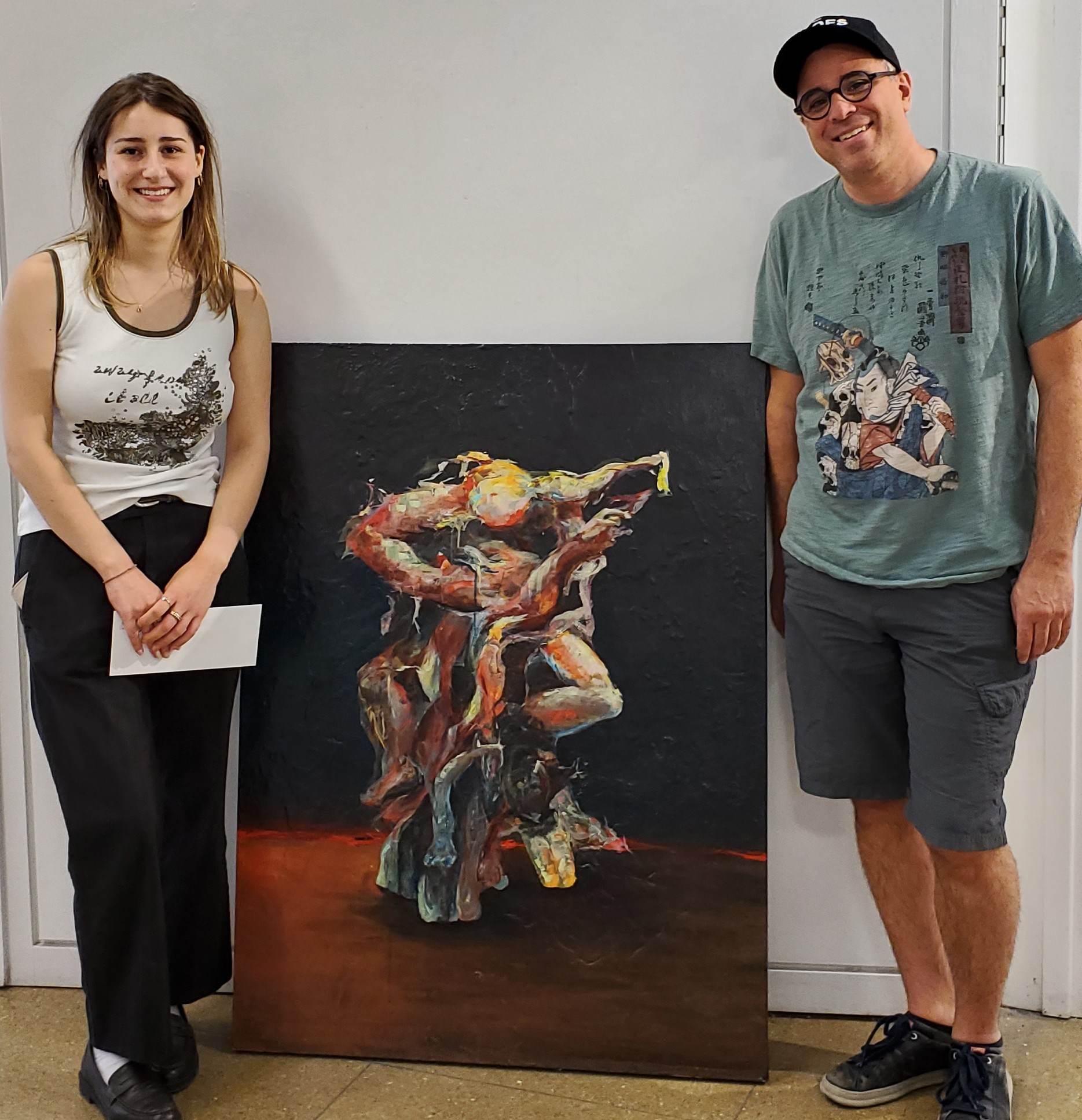 Dessin de l’étudiante Cassandra Viandier et toile de l’étudiante Anaïs Lamontagne.