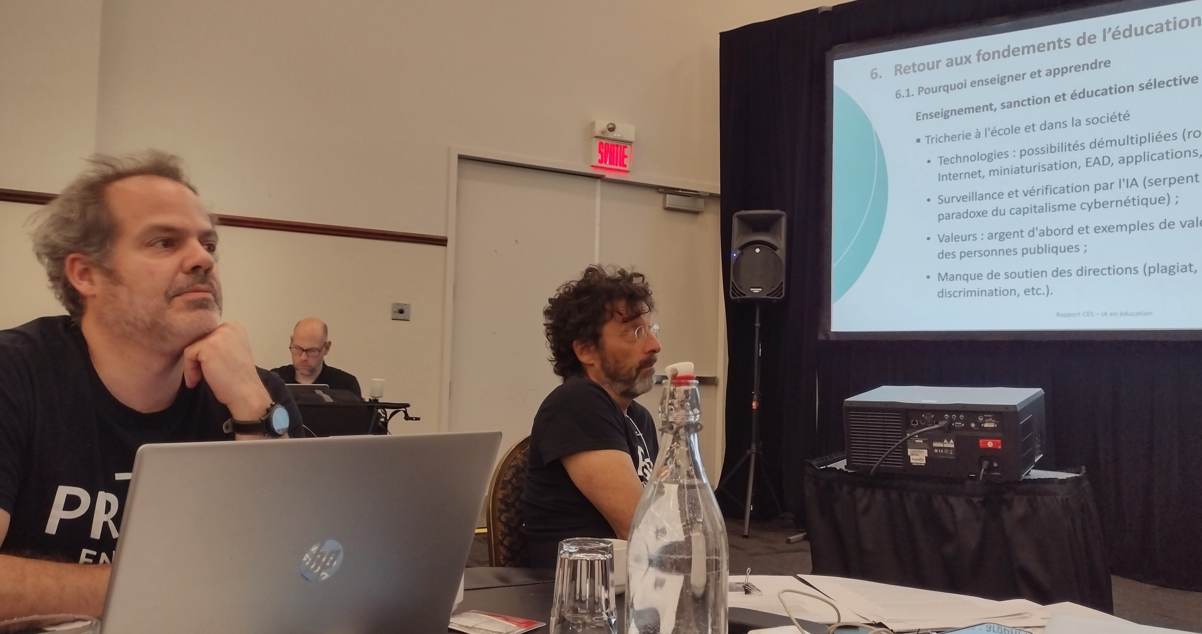 D’autres membres de la CÉ partagent leurs préoccupations pédagogiques et éthiques quant à ce bouleversement numérique. La tricherie avec Chat GPT occupe beaucoup évidemment d’espace dans nos brèves discussions.