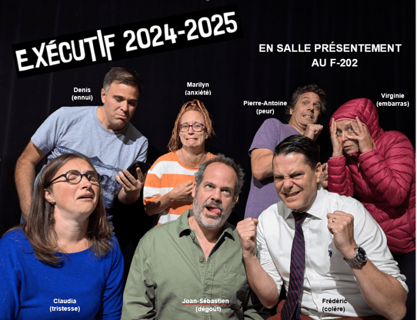 Il faut replacer l’être humain au cœur de l’enseignement! Voilà le thème fort à propos du congrès triennal de juin dernier de la FNEEQ1 (notre fédération syndicale) qui a inspiré notre photo d’exécutif! La déshumanisation de l’éducation et de l’enseignement supérieur est un courant de fond puissant.