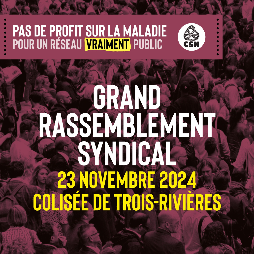 Si le réseau de l’éducation est malmené, il y a aussi de sérieuses inquiétudes légitimes à avoir sur le réseau de la santé! Un grand rassemblement syndical aura lieu le 23 novembre au Colisée Vidéotron de Trois-Rivières pour dénoncer la privatisation du réseau. L’événement sera animé par la comédienne Ève Landry et réunira artistes, humoristes, conférenciers et des invités surprise. C’est un grand événement qui est promis à celles et ceux qui y participeront. Des autobus à partir des Laurentides seront nolisés. Voici le lien pour y réserver votre place: https://www.facebook.com/share/p/149D3AUuvU/