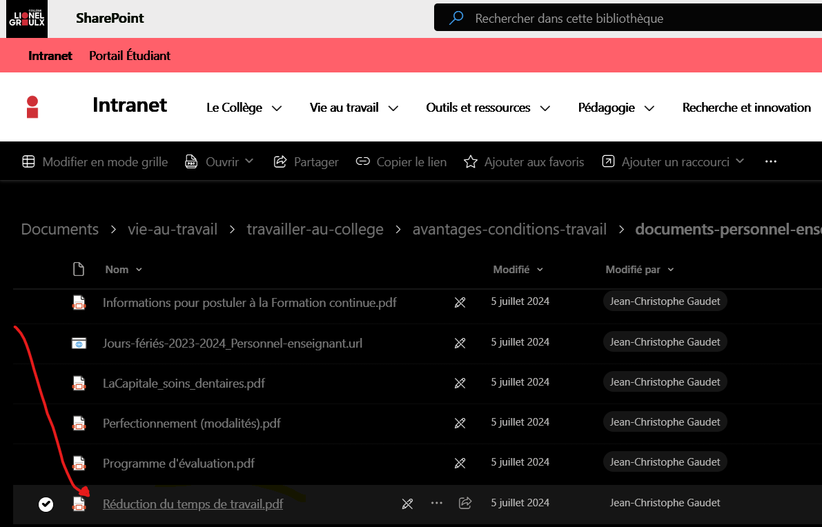 Le formulaire se trouve dans l’intranet du Collège, sous la rubrique Vie au travail, puis sous Documents du personnel enseignant.